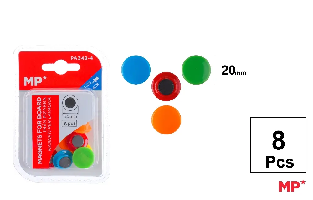 AIMANT POUR TABLEAU COULEUR 20 mm 8 Uds.