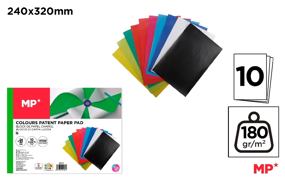 BLOC DE PAPIER BRILLANT 10 FEUILLES.