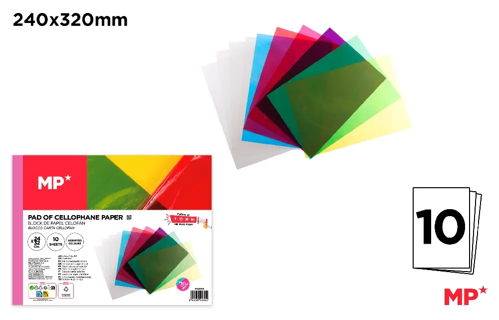 BLOC DE PAPIER CELLOPHANE 10 FEUILLES.