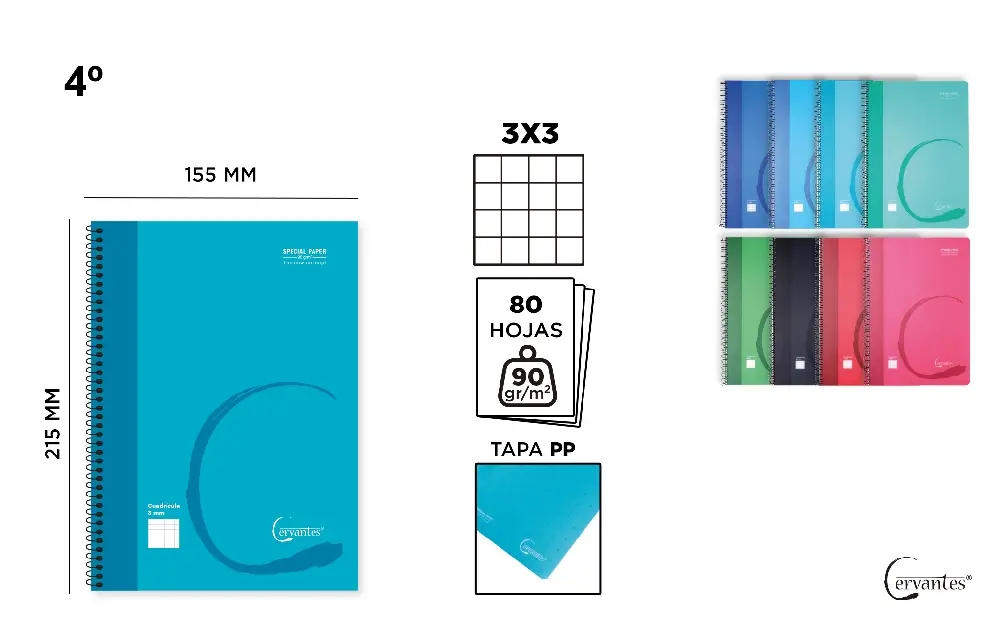 Accueil>CAHIERS ET COUVERTURE ESPAGNOLE>CAHIERS À COUVERTURE PLASTIQUE>CAHIER À SPIRALE 4º 3 x 3 80 FEUILLES PP
