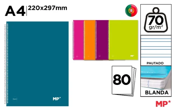 CAHIER À SPIRALE COUVERTURE COLORÉE A4 7