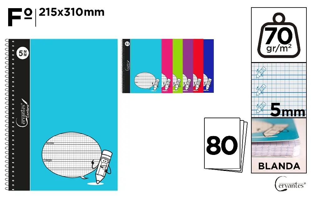 CAHIER À SPIRALE Fº 80 FEUILLES 5 mm 70.