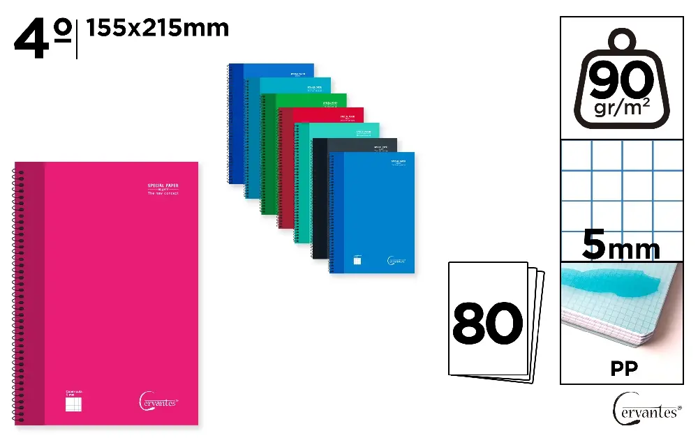 CAHIER À SPIRALE Fº 80 FEUILLES 90 g/m²