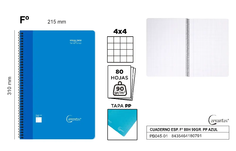 CAHIER À SPIRALE Fº 80 FEUILLES 90 g/m²