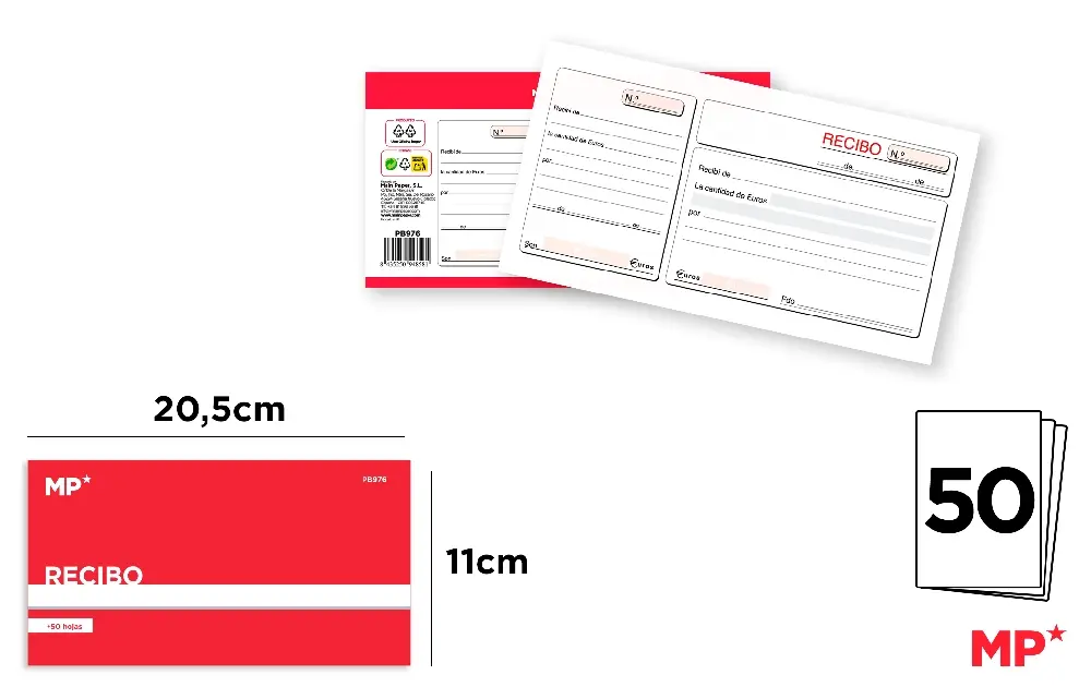 Accueil>Bureau et vie quotidienne>Fournitures de bureau en papier>CARNET DE REÇU 50 FEUILLES 20,5 x 11 cm.