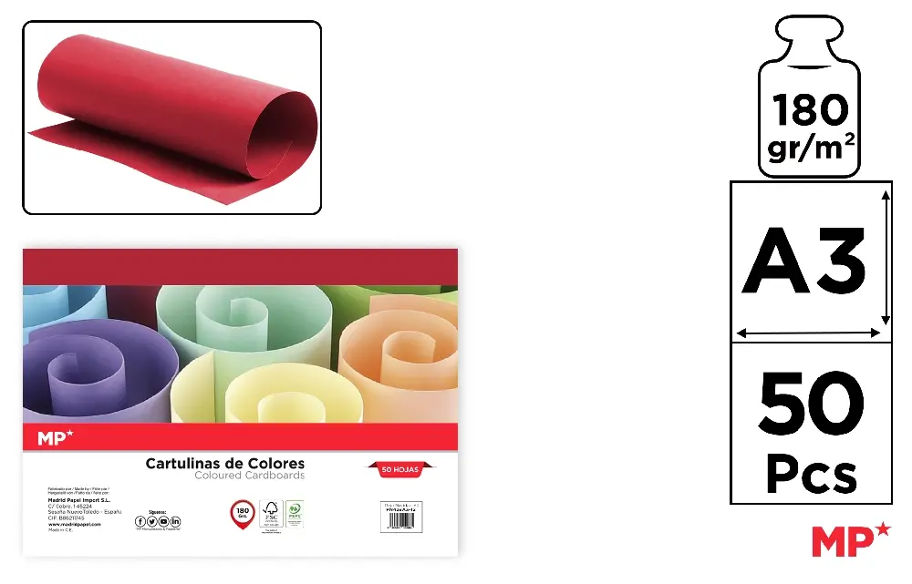 CARTON A3 PAQUET DE 50 FEUILLES ROUGE NO