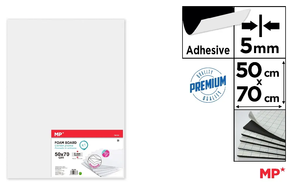 CARTON MOUSSE 50 x 70 cm ADHÉSIF BLANC 5