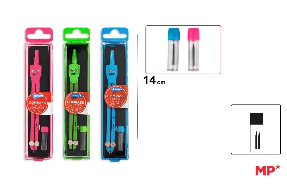 Accueil>Autres fournitures de bureau>Instruments de traçage>COMPAS BASIQUE COLORÉ AVEC RECHARGE DE M