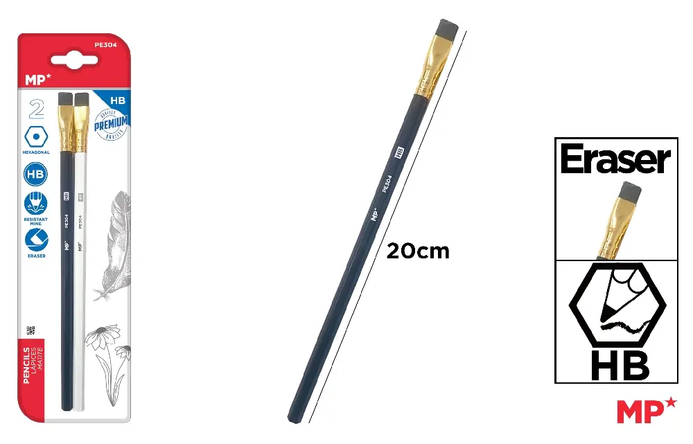 CRAYON HB PREMIUM AVEC GOMME 2 Unités.