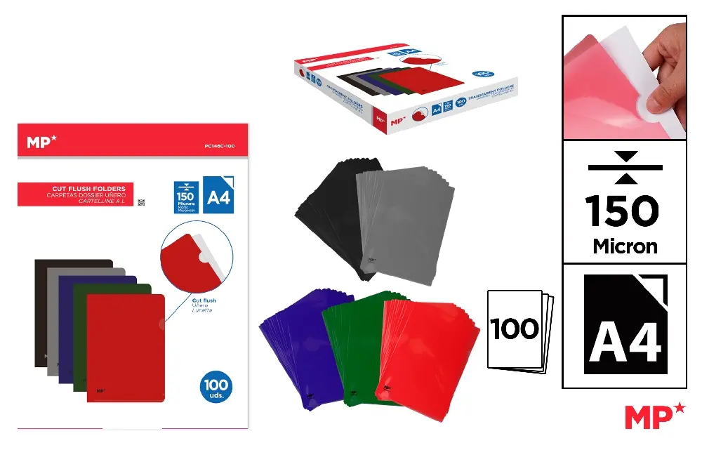 DOSSIER À CLIPS TRANSPARENT A4 COULEURS.