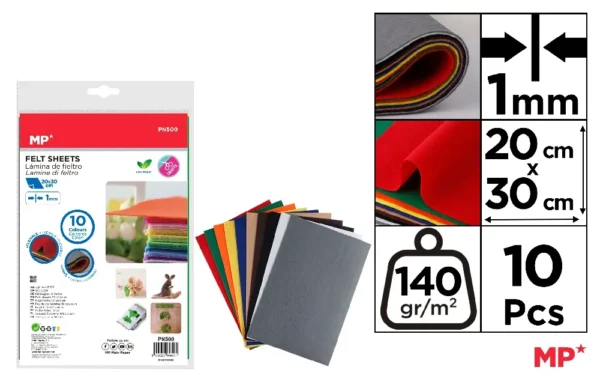 FEUTRINE 20 x 30 cm 10 COULEURS.