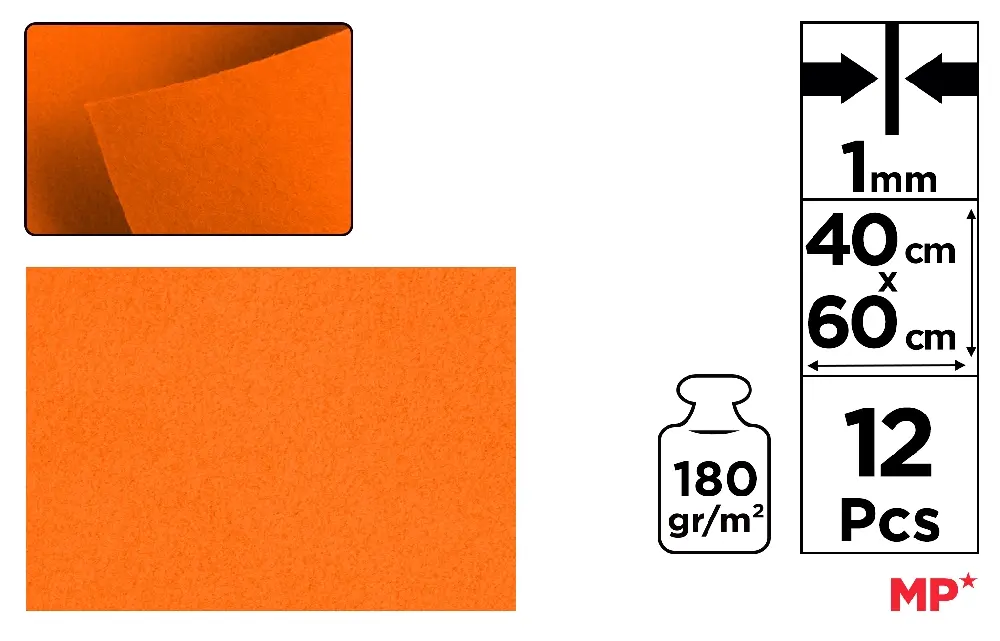 FEUTRINE 40 x 60 cm COULEUR ORANGE