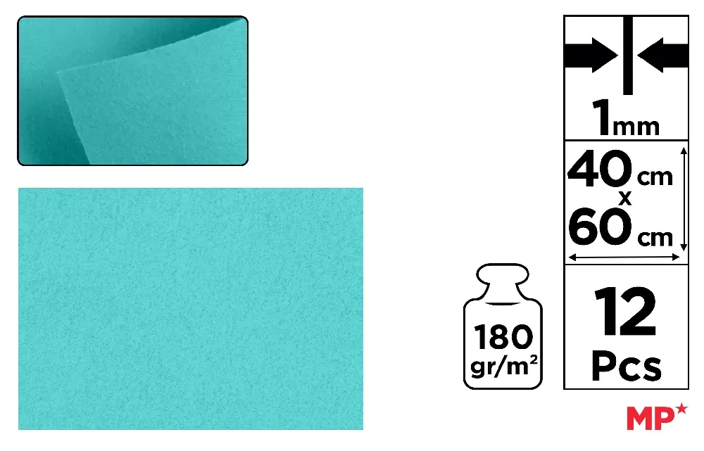 FEUTRINE 40 x 60 cm COULEUR TURQUOISE