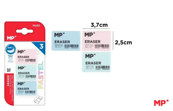 GOMME PASTEL 37 x 25 x 15 mm 3 Unités.