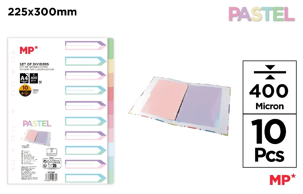 INTERCALAIRES 10 COULEURS PASTEL A4