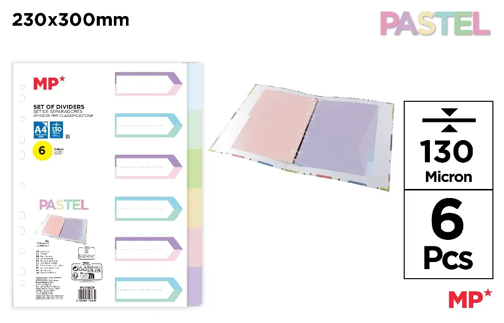 INTERCALAIRES 6 COULEURS PASTEL A4