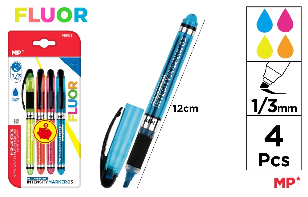 MARQUEUR FLUORESCENT 4 Unités PACK ÉCONO