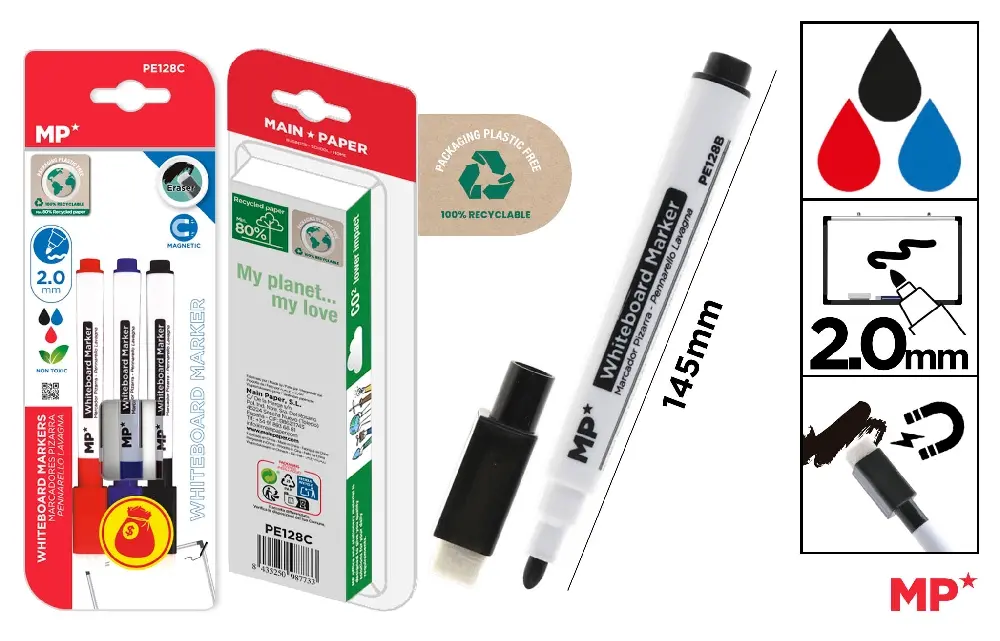 MARQUEUR TABLEAU NOIR GOMME 3 COULEURS