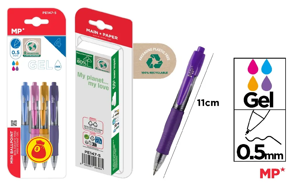 MINI POINTE STYLO GEL 0.5MM 4PCS