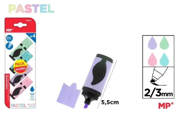 MINI SURLIGNEUR PASTEL 4 Unités PACK ÉCO