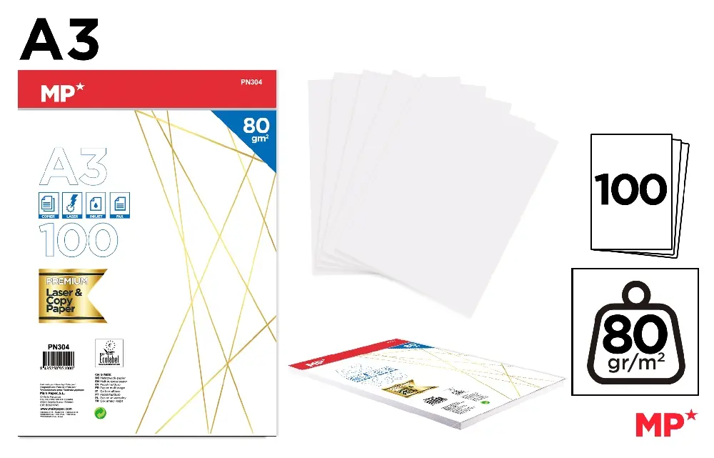 PAPIER A3 100 FEUILLES 80 g.