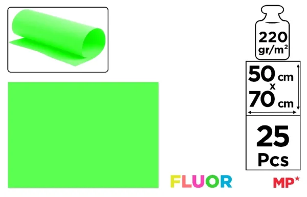 PAPIER CARTONNÉ FLUORESCENT VERT 50 x 70