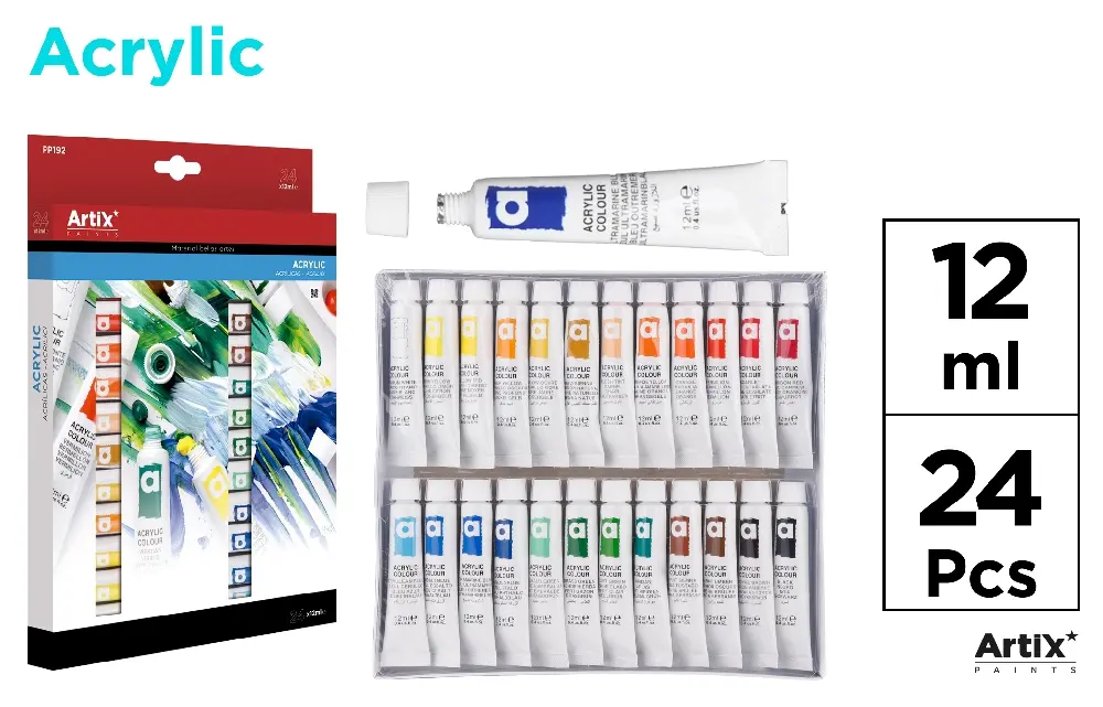 PEINTURE ACRYLIQUE 24 TUBES x 12 ml.