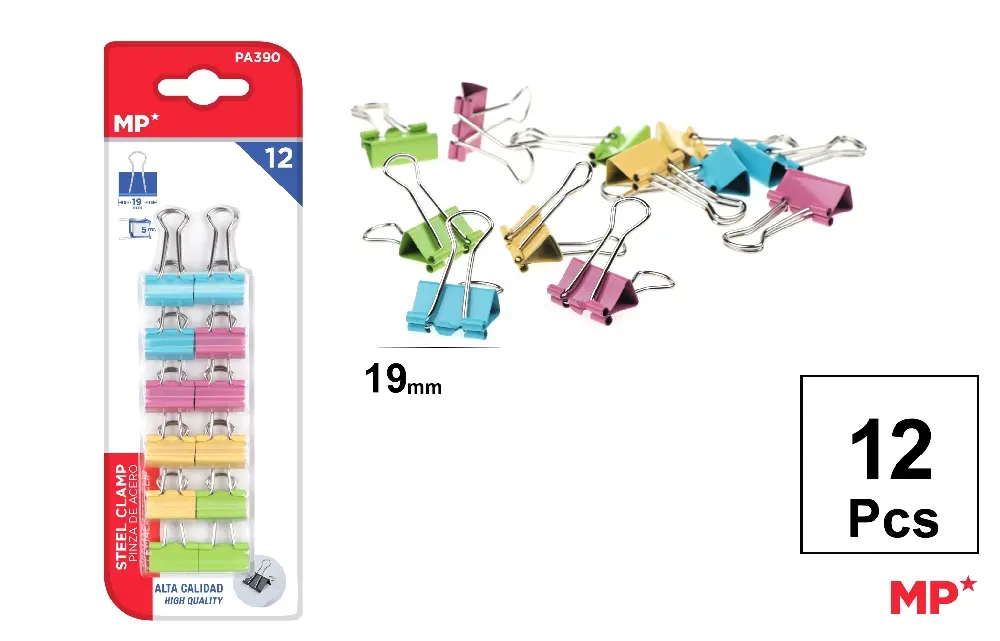Accueil>Autres fournitures de bureau>Pince à longue queue / Pince à billets>PINCE DOUBLE CLIP COULEURS 19 mm.