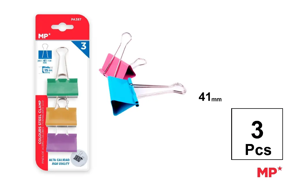 Accueil>Autres fournitures de bureau>Pince à longue queue / Pince à billets>PINCE DOUBLE CLIP COULEURS 41 mm.