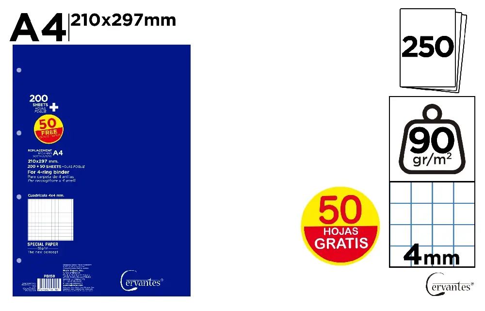 RECHARGE A4 90 g/m² 250 FEUILLES 4 TROUS