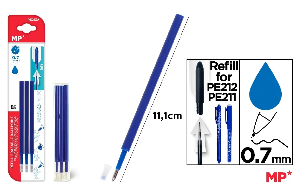 RECHARGE POUR STYLO BILLE EFFAÇABLE BLEU