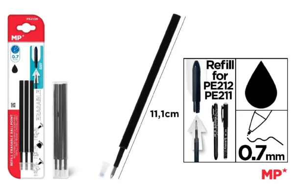 RECHARGE POUR STYLO BILLE EFFAÇABLE NOIR