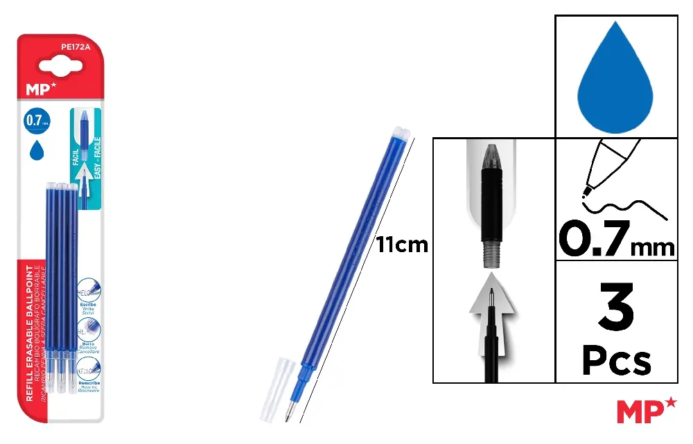 RECHARGE POUR STYLO EFFAÇABLE BLEU 3 Uni