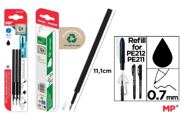 RECHARGE POUR STYLO EFFAÇABLE NOIR 3 Pcs
