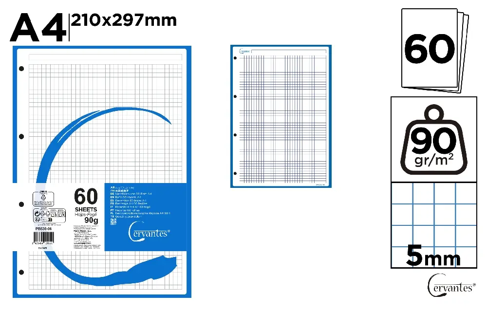RECHARGES A4 QUADRILLÉE 5 x 5 mm COULEUR