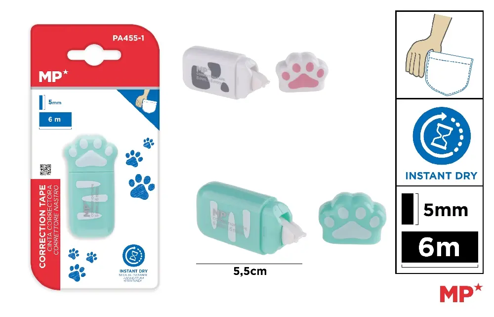 Accueil>Autres fournitures de bureau>Ruban correcteur / Correcteur liquide>RUBAN CORRECTEUR COULEUR 5 mm x 6 m.