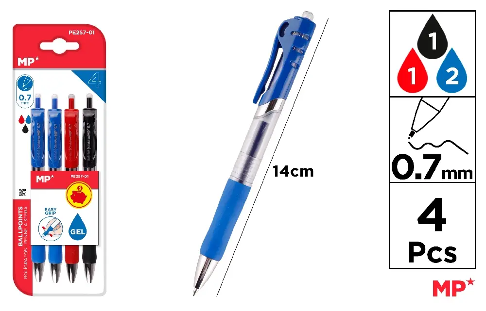 STYLO À ENCRE GEL POINTE 0,7 mm 4 Unités