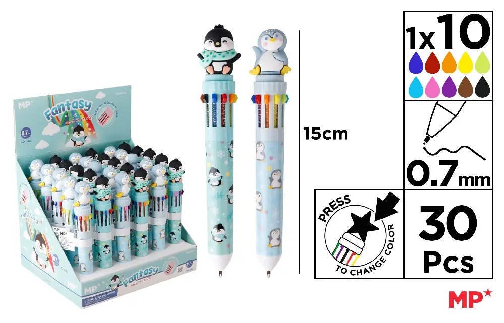 STYLO FANTAISIE MULTICOLORE 10 COULEURS.