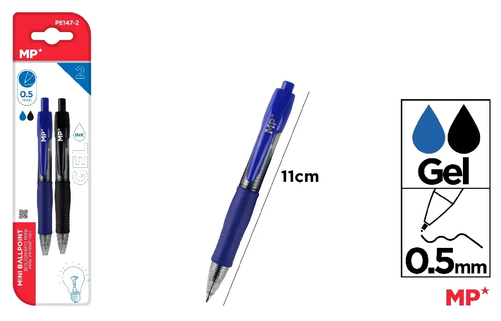 STYLO GEL POINTE 0,5 mm 2 Unités.