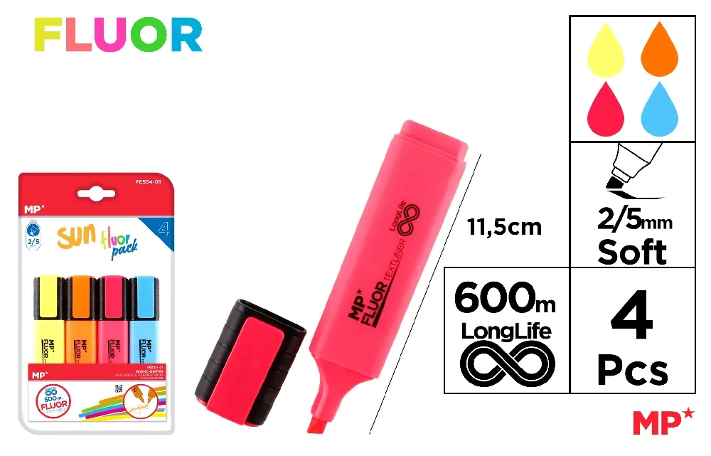 SURLIGNEUR TEXTLINER SUN PACK 4 Unités.